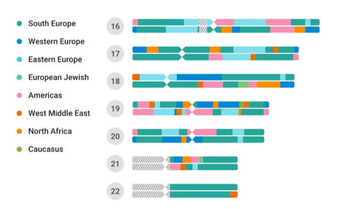 Nos équipes ont été agréablement surprises lors de la découvertes de ses origines ethniques. Nombreux étaient persuadés détenir uniquement des origines d’Europe occidentale. Les tests autosomal, ADN-Y et mitochondrial nous a prouvé le contraire.