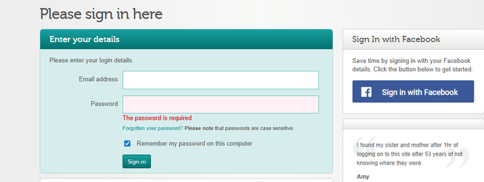 - Rendez-vous sur le site officiel de Genes Reunited et cliquez sur « S’inscrire » ou connectez-vous avec votre compte Facebook