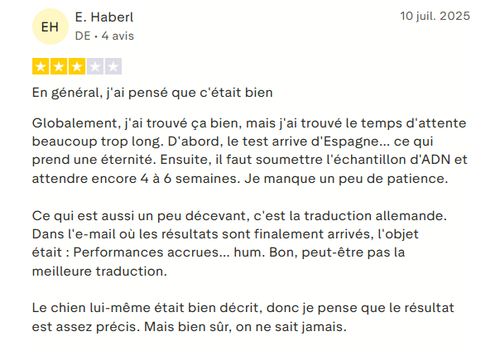 Certains propriétaires de races rares rapportent des analyses incomplètes ou des identifications parfois approximatives. D’autres pointent une interface en ligne moins intuitive que celle proposée par certains concurrents américains. S’ajoutent à cela quelques retours faisant état de problèmes de connexion à DNA Connect et de rapports jugés complexes à interpréter.